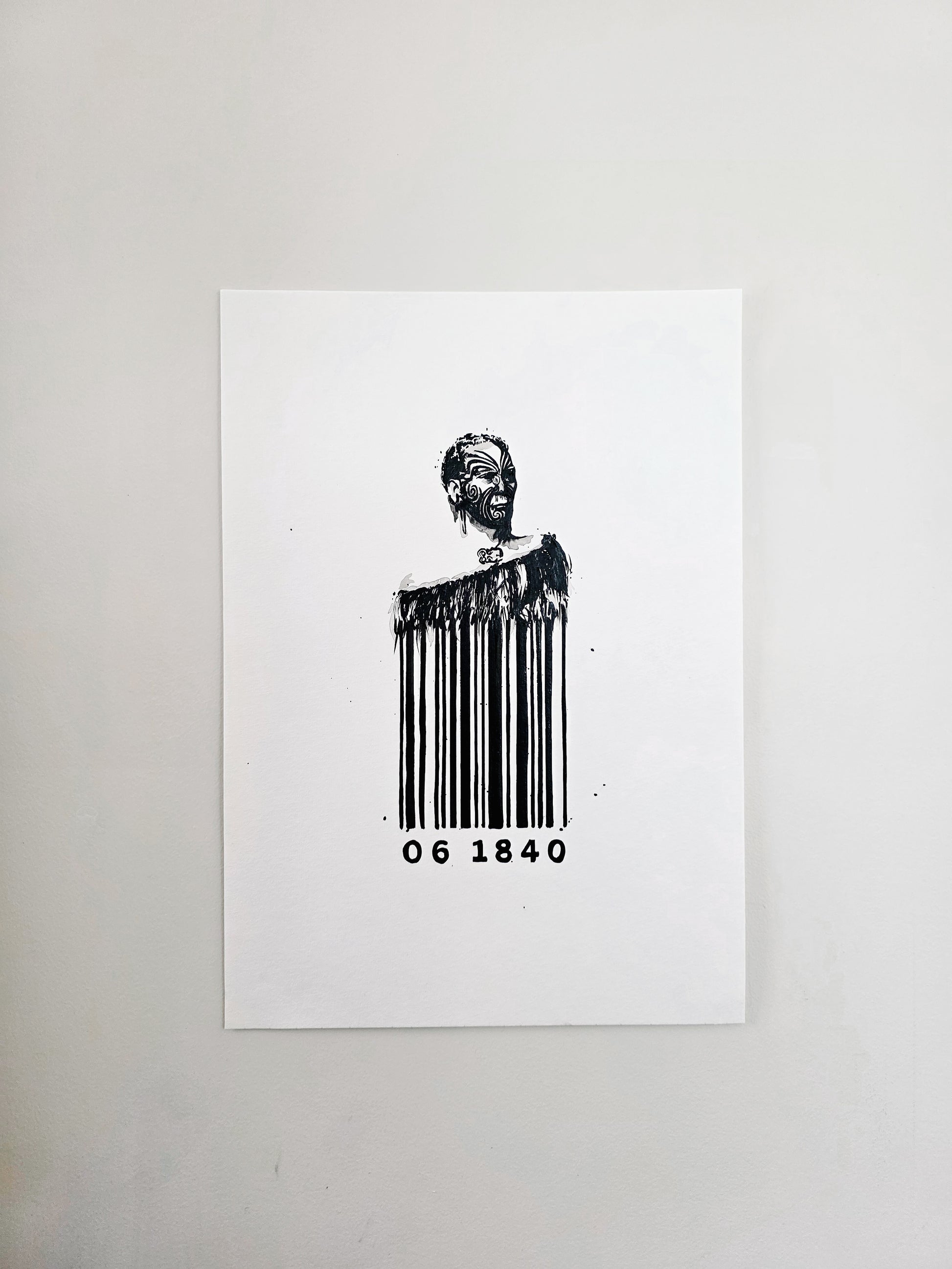 Barcode Of Whakapapa is a black ink painting that was created in a stand against racial discrimination in Māori culture.