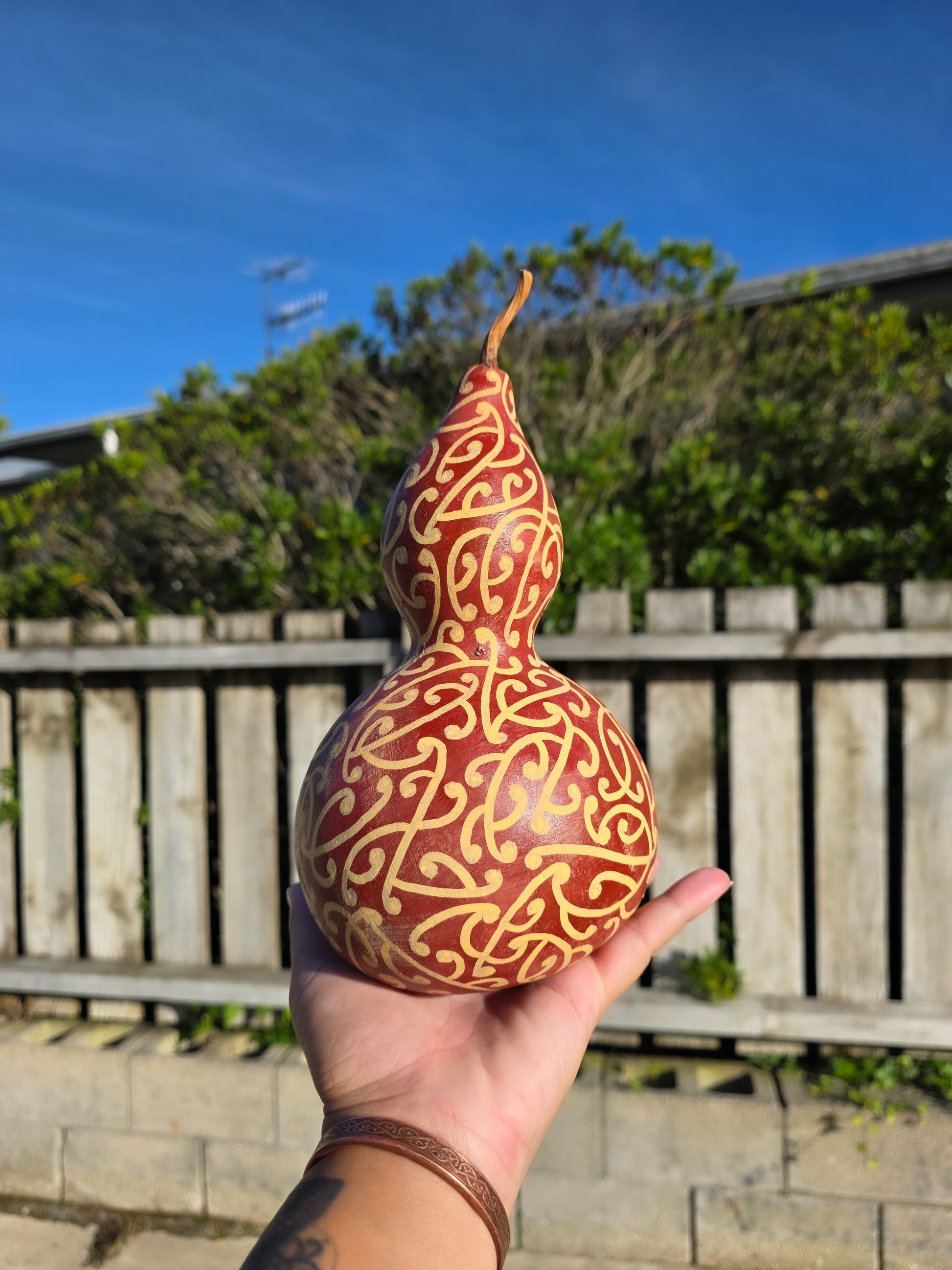 Contemporary hand painted māori pattern, inspired by Whakapapa and connection, colours inspired by earthy red clay tones.